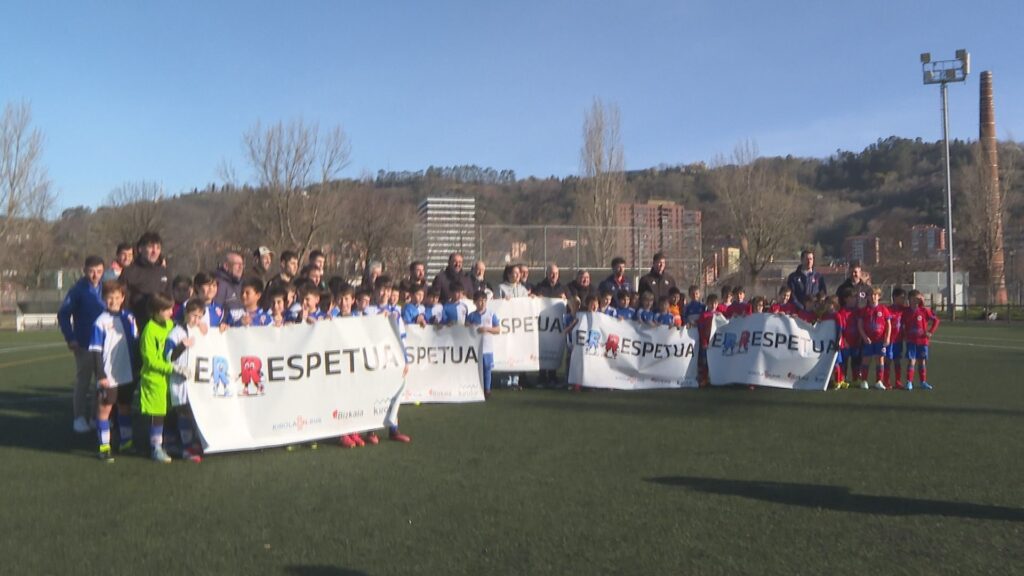 Hemendik aurrera Bizkaiko eskubaloi, futbol eta saskibaloi partiden aurretik “errespetua” jartzen duen pankarta erakutsiko dute Eskola Kiroleko haurrek. Gurasoen jarrera desegokien gorakada ikusita, Bizkaiko Foru Aldundiak, joan den larunbaten jarri zuen martxan ekimena.
