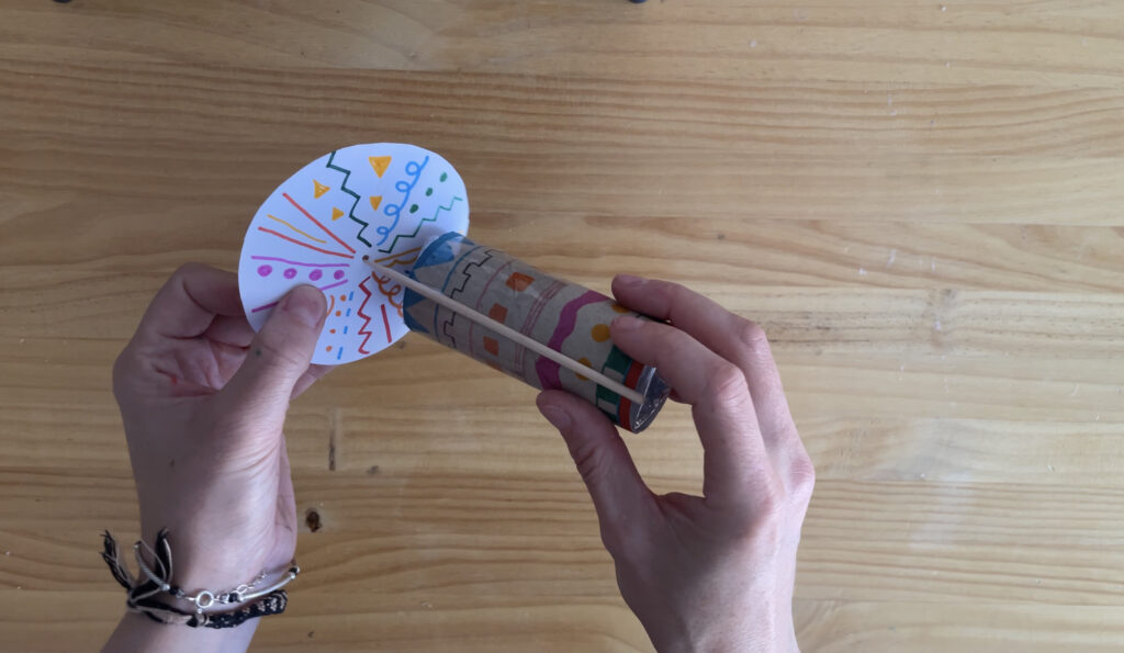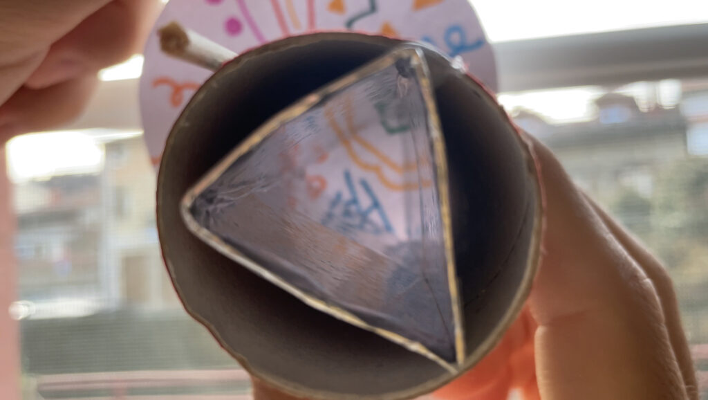 - Listo, kaleidoskopioa prest! Garrantzitsua da berau erabiltzerakoan toki argitsu batean egitea, argia behar baitu ondo funtzionatzeko.