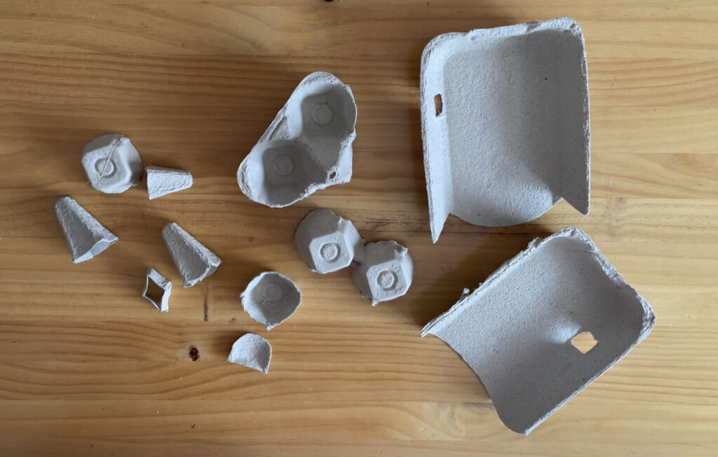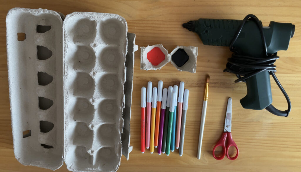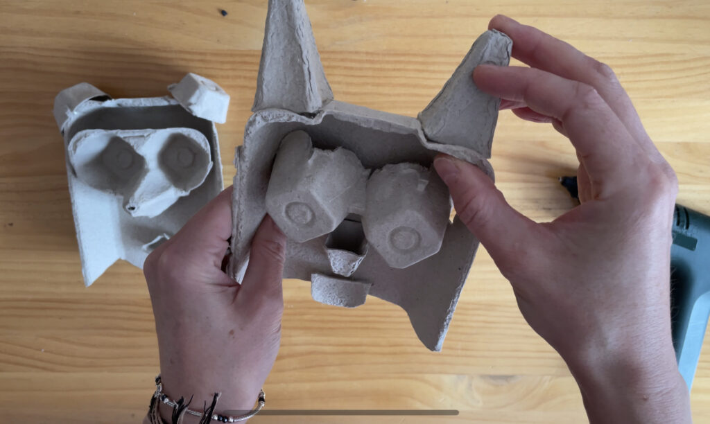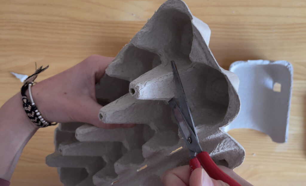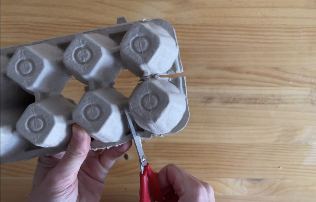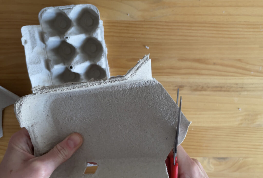 1. Hasteko, gure aurpegiaren euskarria sortuko dugu arrautza kaxaren goiko aldea erabiliz.