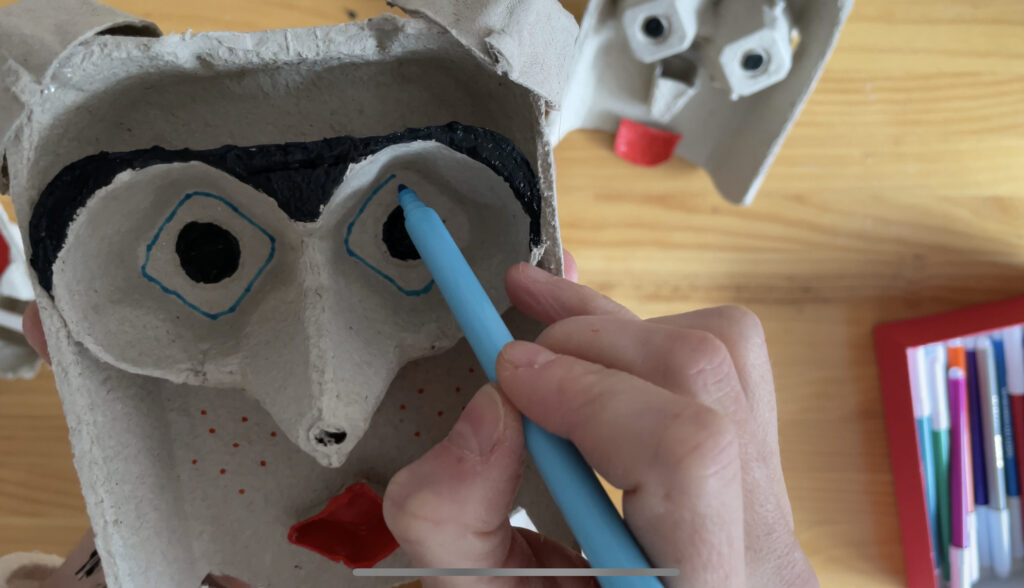 4. Begi bat, ahoa, sudurra, bekainak … norberak bere sormena erabili dezala  aurpegiak osatzeko.