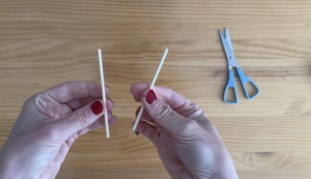 - Hasteko, gure kometaren gorputza izango diren bi makila zati moztuko ditugu, bata bestea baino handiagoa.
