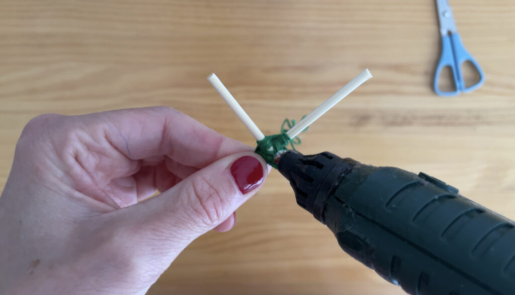 - Jarraitzeko, bata bestearekin itsatsiko ditugu, gurutze forma emanez.