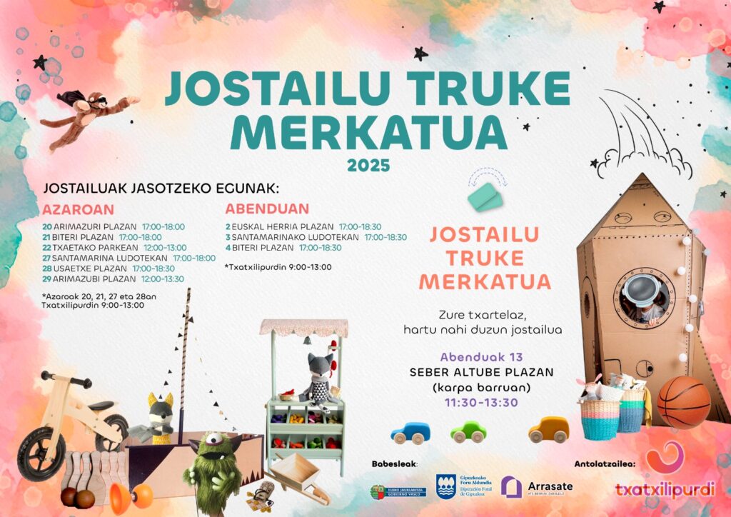 Abenduaren 13an, Jostailu truke eguna ospatuko da 11:30-13:30 bitartean Seber Altube plazan egongo den karpan. Txartel bakoitzeko jostailu bat trukatzeko aukera izango dute parte hartzaileek.