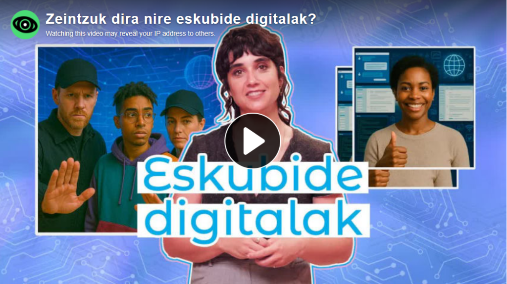 Gure eskubide digitalak zeintzuk diren ulertzeko bideo aproposa ikusgelan. Egokia izan daiteke etxean ikusteko eta gaiaz hitz egiteko.